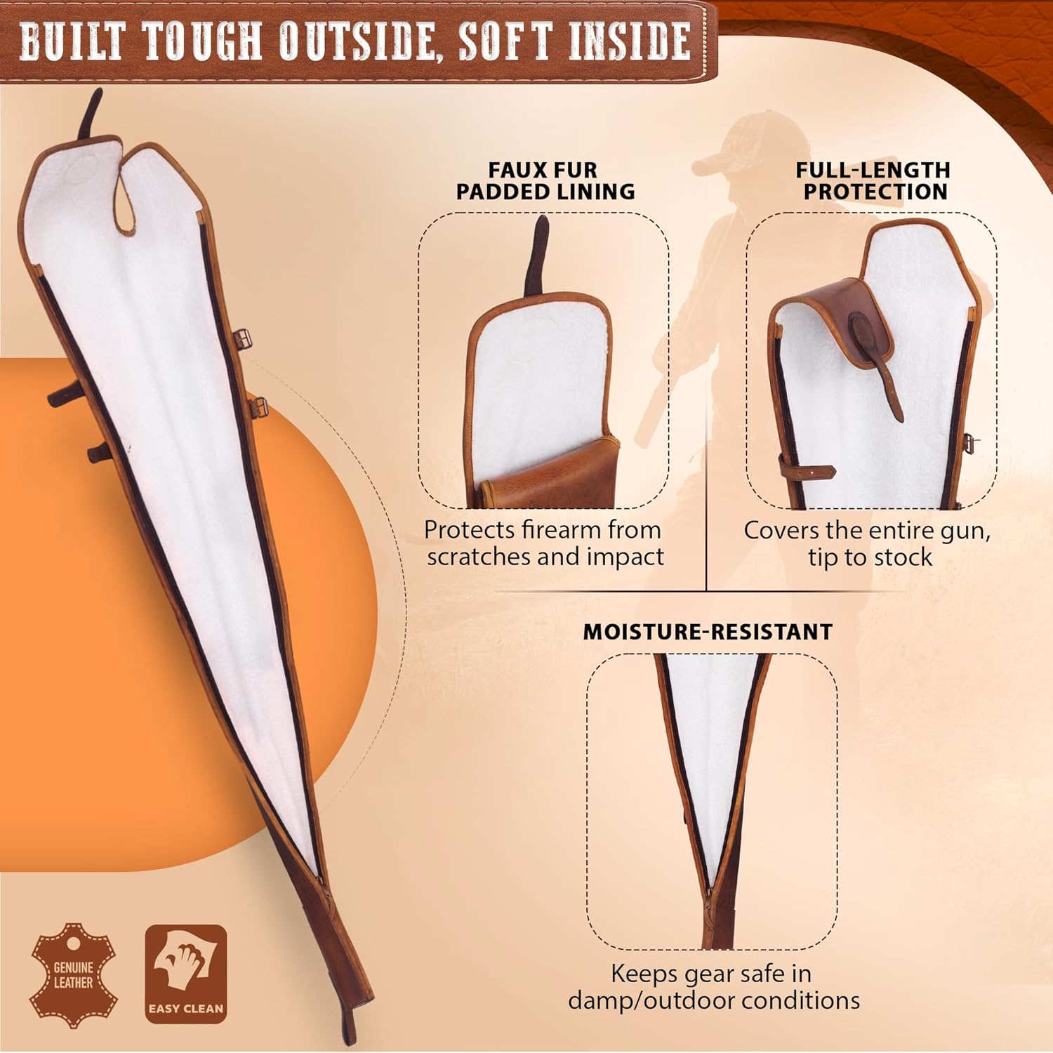 • Durable Material: Vegetable-tanned leather rifle scabbard and leather shotgun case provide long-lasting strength and style; keep your gear secure during storage or transport